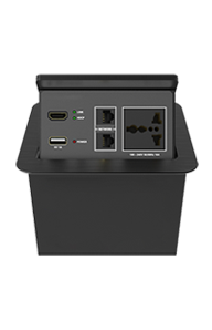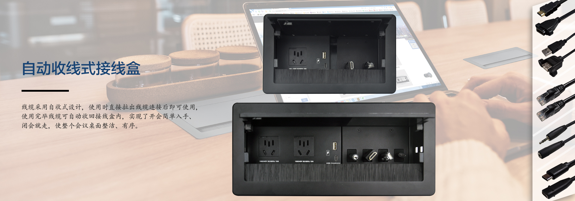 ? 某公司視頻會(huì)議項(xiàng)目,在設(shè)備選型中,金視JS-MF定制桌面插座)成為項(xiàng)目選定品牌及型號(hào),視頻會(huì)議共使用43套金視產(chǎn)品;(其中21臺(tái)為銀色,19臺(tái)黑色 分1層和5層會(huì)議室使用)? 金視JS-MF定制產(chǎn)品?桌面電動(dòng)翻轉(zhuǎn)插座,可藏式接線(xiàn)盒提供了一個(gè)整潔、緊湊、簡(jiǎn)單的連接解決方案。采用電動(dòng)控制,使用時(shí)只需輕按接線(xiàn)盒開(kāi)啟按鍵,接線(xiàn)盒 180°旋轉(zhuǎn),隱藏的各種接口即展現(xiàn)