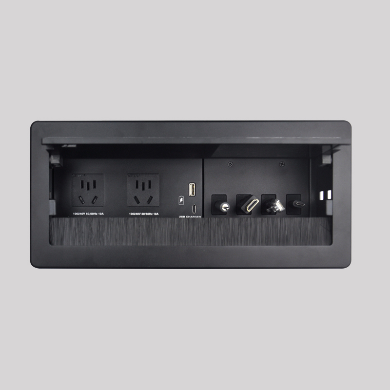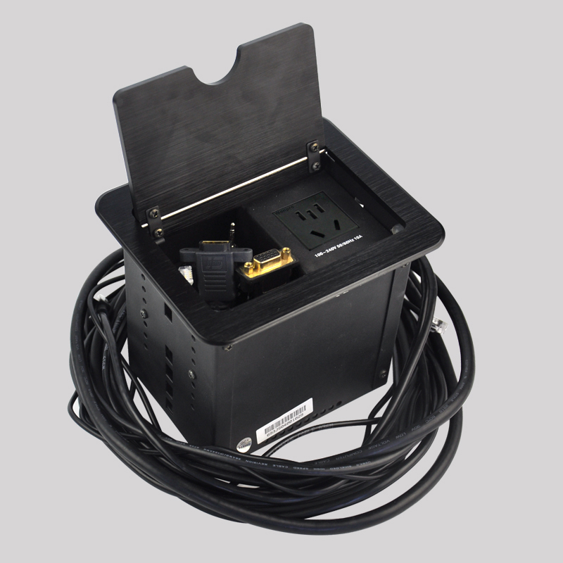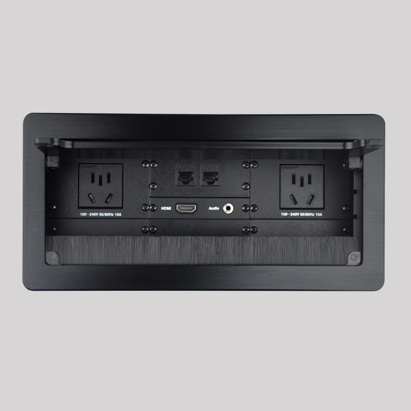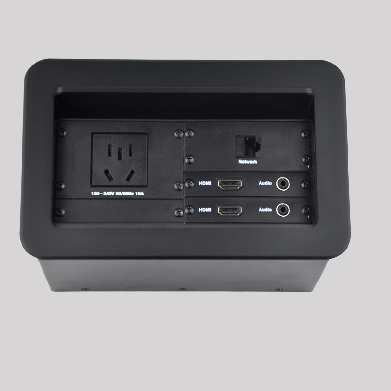 ? JS-5+系列可藏式接線盒提供了一個整潔、緊湊、簡單的鏈接解決方案。接線盒采用氣動與機械閉鎖式結(jié)構(gòu)、上下接口貫穿式設(shè)計,巧妙的實現(xiàn)升起和閉合。使用時只需輕按接線盒頂部,釋放機械閉鎖,接線盒被氣動裝置順暢撐開,隱藏的電源、網(wǎng)絡(luò)、電話、視頻、音頻等各種接口即呈45°展現(xiàn)出來。使用完畢后,輕按接線盒頂部,機械閉鎖關(guān)閉,各種接口隱藏起來,隱藏后的接線盒與平臺保持水平。