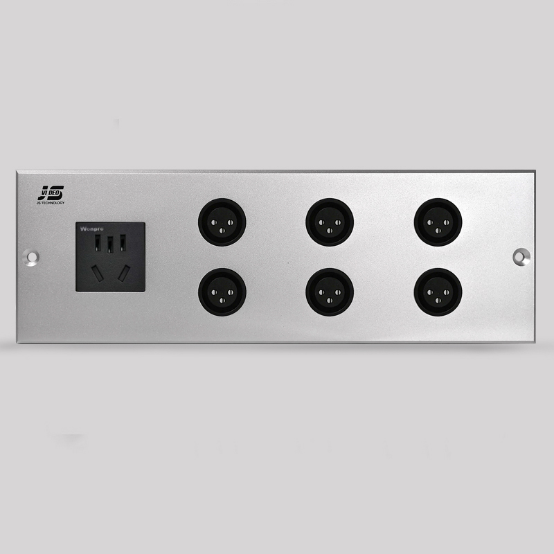 ? ? ? JS-WP111墻面接線面板提供了墻面一體化連接解決方案,可以直接安裝在 86 型底盒內(nèi),多種類(lèi)型的接口組合才可以充分滿(mǎn)足不同使用者的需求,面板材質(zhì)選用 4mm 厚度鋁鎂合金,表面經(jīng)過(guò)氧化、拉絲、噴砂多道技術(shù)工序處理,整體大方,滿(mǎn)足高檔會(huì)議,辦公,居家使用。