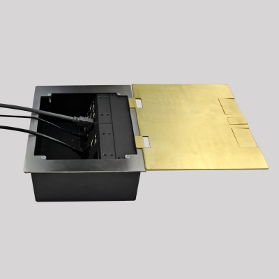 JS(金視)系列可藏式接線盒可以完美的展現(xiàn)線纜及接口的隱藏,且操作比較簡單,通過按壓(或掀起)接線盒表面面板來實現(xiàn)彈開和閉合,閉合后所有接口都隱藏起來,各種線纜可以有序的隱藏在接線盒后面,接線盒面板表面與桌面保持水平。